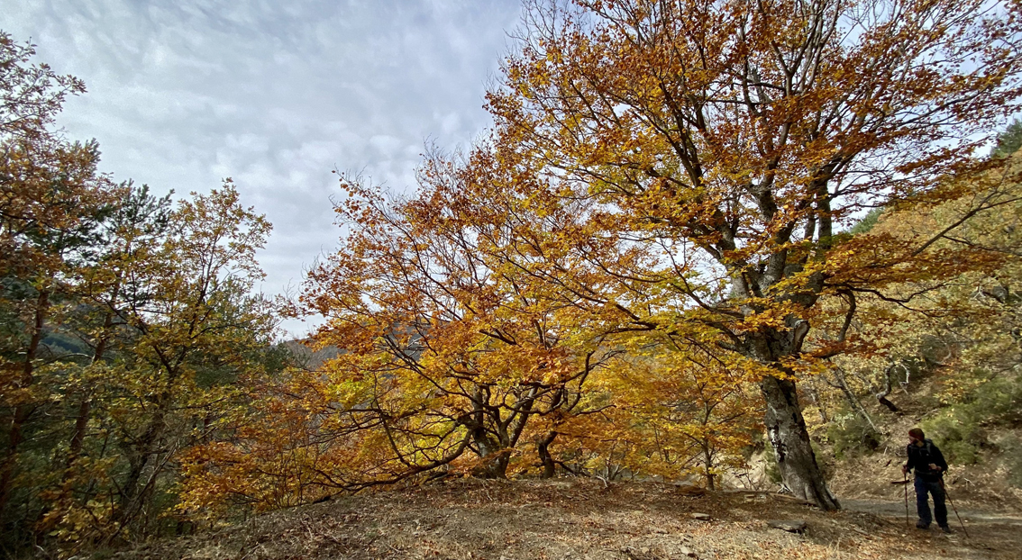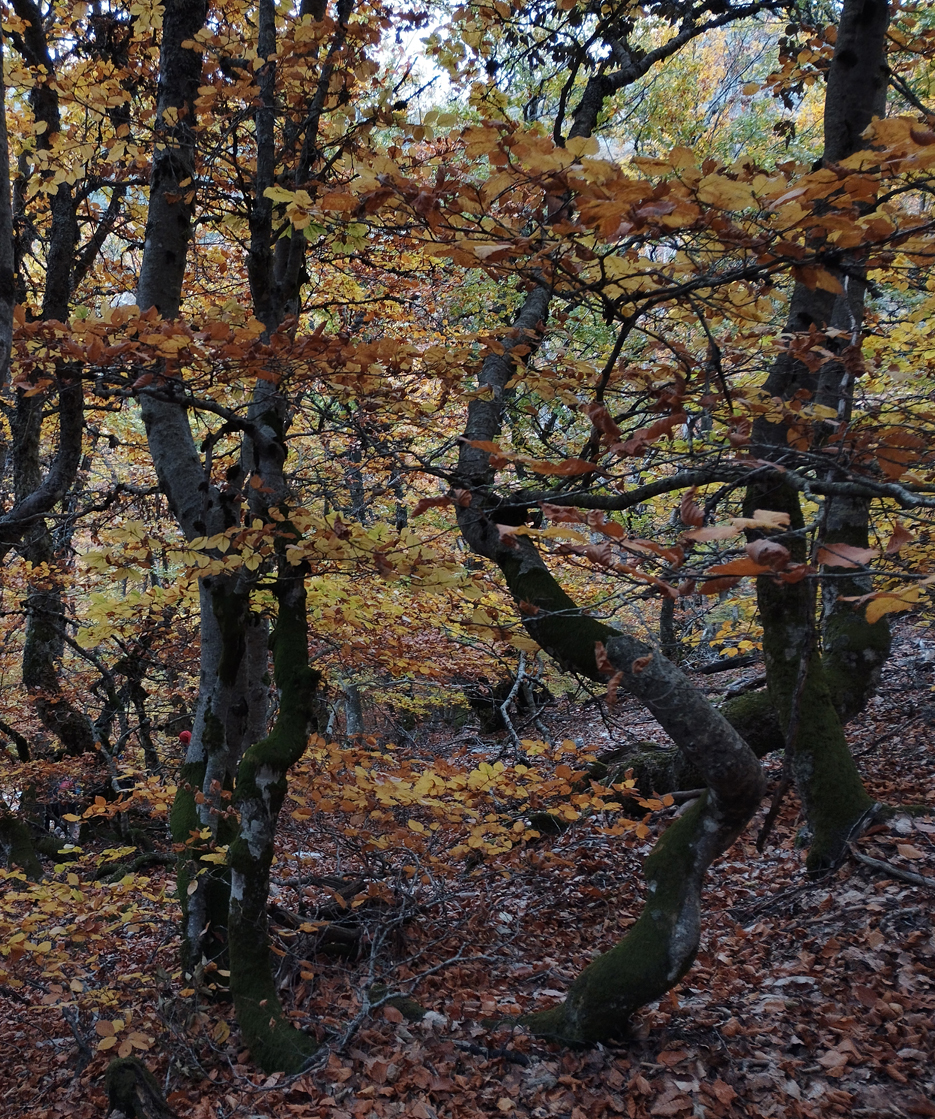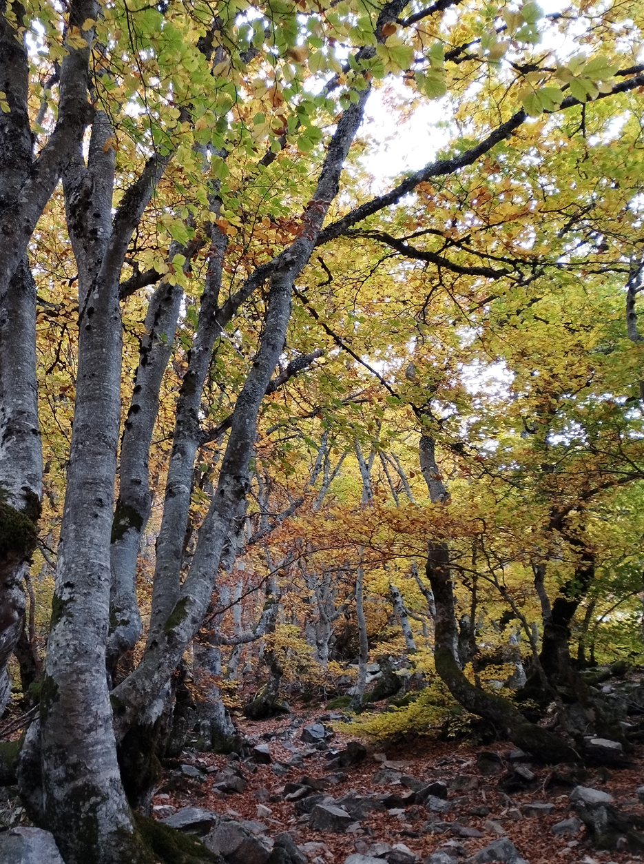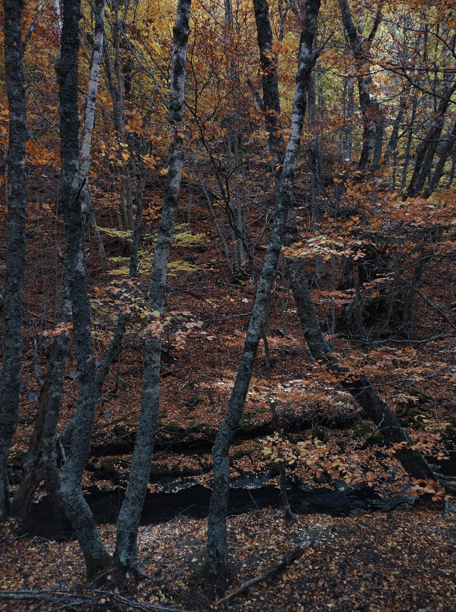10.50 h salimos cerca de Riaza. subida por el maravilloso Hayedo de la Pedrosa / 12.20 h cima: Parrejón (con «a»). paramos 10′ y bajamos por terreno desastroso, entre pizarras y arbustos medio complicados, al río en plena Tejera Negra. comemos en 15 minutos y subimos por la Tejera a un ritmo suave. la pendiente es más bien fuerte. voy bien hasta el final, en que estoy algo pillao. llegamos a Cresta del Dragón, segunda cima. la recorremos entera, trepando entre las rocas afiladas. el samuro está sin nada de energía. tira como mejor puede (un día más tarde descubre que llevaba encima un virus infantil que le deja el cuerpo reventao aún estando quieto en casa) / sólo el último kilómetro y medio es de bajada / llegamos a las 18.40 h, con la noche oscura pisándonos los talones