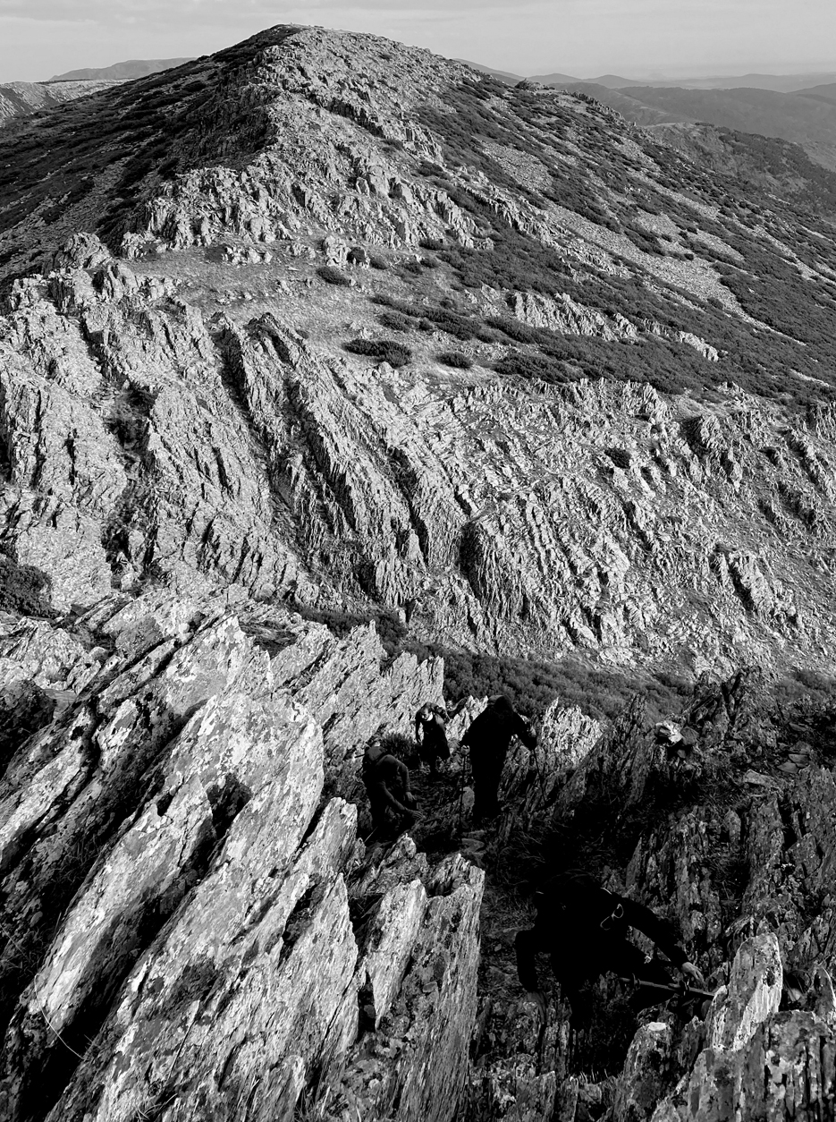 en Guadalajara se suele percibir esa máxima que dice que ni los kilómetros ni el desnivel importan, que lo crucial es la dificultad del terreno. este día fuimos todo el tiempo a muy buen ritmo, pero los arbustos, la pizarra resbaladiza y las trepadas por las crestas nos ralentizaron un huevo y nos cascaron el cuerpo pero bien.
