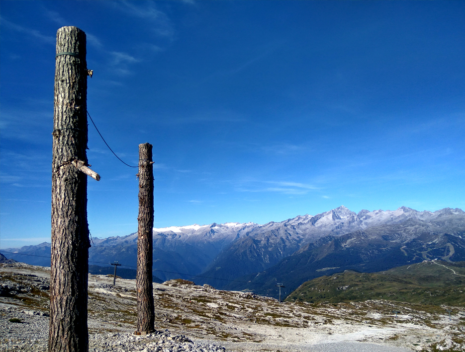 los árboles: omnipresentes abetos: pifias y alerces, y según qué zonas: robles, hayas, avellanos, pinos y pinos cembro (pinos enanos con el tronco bajo tierra para soportar el frío)