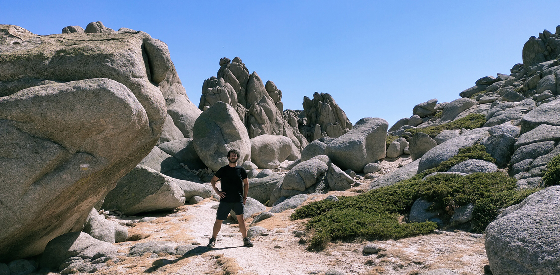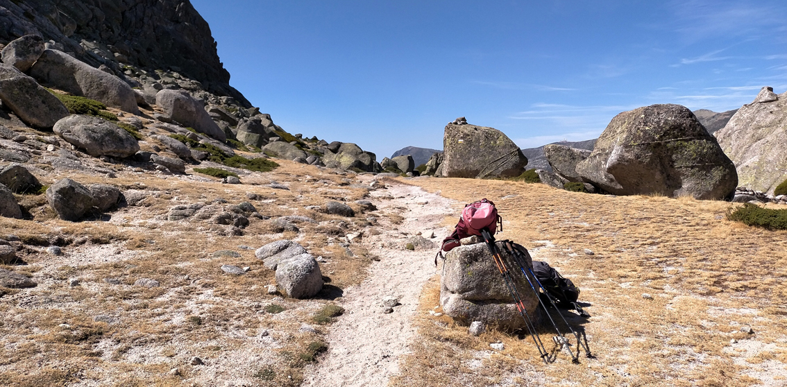 8.45 h salimos de Canto Cochino (altura: 1.020 m) / 10.10 h El Pajarito. hasta aquí, 3,5 km de subida tranquila / (2 paradas en la subida de 10′ c/u) / 13 h (estimación clavada) llegamos a las Torres (en 4 h sólo llevamos 7 km!) (altura: 2.029 m) / 13.15 h paramos a comer / 14.10 h salimos / 14.25 h pasamos por el lugar de la crisis de Arantxa (¡sólo quedaban 15′ hasta el punto más alto de la ruta!) / circulamos por el «cordal» de la Pedriza posterior 50 minutos a un ritmo bueno pero sin prisas / 15 h empezamos a descender, siempre por el PR1, que seguimos toda la ruta y sólo lo dejamos a las 17.15 h, al llegar al collado de la Dehesilla. llevamos sólo 11 duros km, 7 de subida y 4 de bajada: la Pedriza es flipante) / 17.40 h Gran Tolmo / 17.55 h puente de las libélulas. paramos 10′ para meter los pies (bueno, yo). no hay libélulas. / 18.30 h Canto Cochino. estamos secos. bebemos agua, cocacola, aquarius y alhambras verdes. día glorioso.