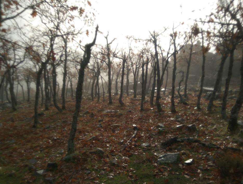ruta muy, muy samura por el terreno: pedrolos grandes y pequeños las ocho horas de ruta, sin descanso. pedrolos húmedos o calados, musgo por un tubo, resbalones, había piedras hasta en los bosques, bajo los robles… brutal.
