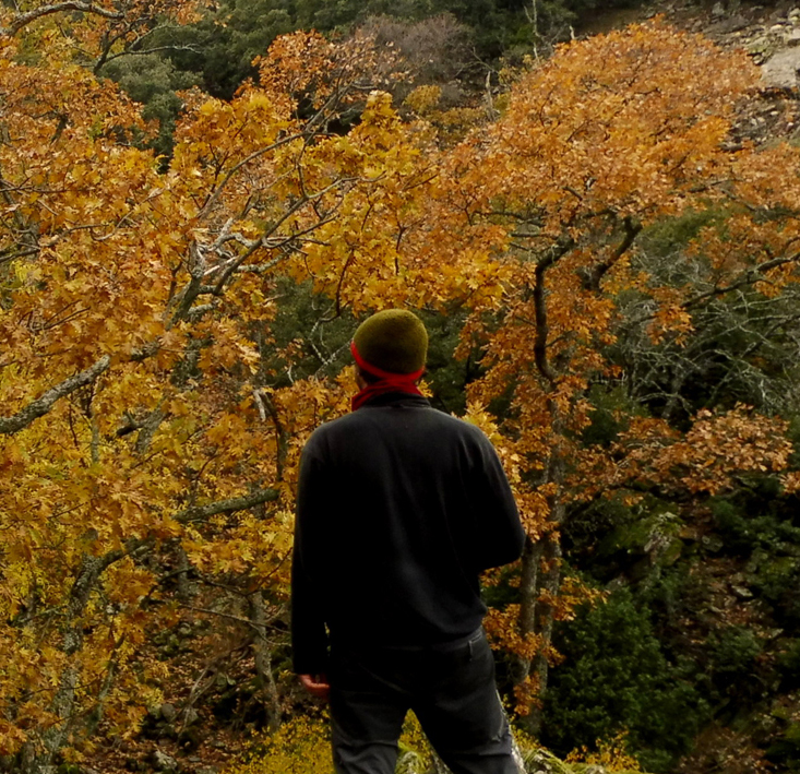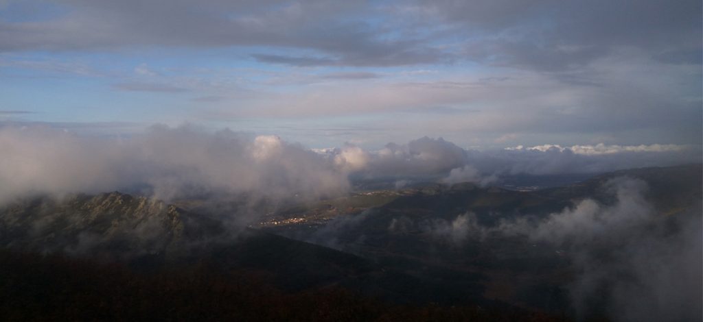 10.30 h Hatazar (pueblo) / subida cañera al lado del pedregal (450 m de desnivel rápidos) / 12.10 h pico Sombrereras / bajada muy dura. pedrolos grandes y resbaladizos. mucha humedad / 14.05 h. el hermosísimo barranco de Trevejiles nos dejó maravillados. comemos en 30 ‘ y salimos / subimos al collado. durillo. 300 m desnivel en pocos metros / empieza a llover fuerte: calados en nada. / 16 h llegamos a pico Corral de Cantos (1.425 m) / bajada todo el tiempo por bosque, campo a través. al menos los pedrolos están algo más almohadillados / con mucho cuidado hasta el final (ya hasta el nabo de las piedritas) / 18 h llegamos a carretera, luego cogemos una pista / 18.30 h llegamos a Hatazar.