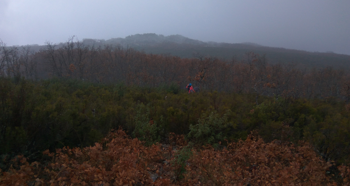 ruta muy, muy samura por el terreno: pedrolos grandes y pequeños las ocho horas de ruta, sin descanso. pedrolos húmedos o calados, musgo por un tubo, resbalones, había piedras hasta en los bosques, bajo los robles… brutal.